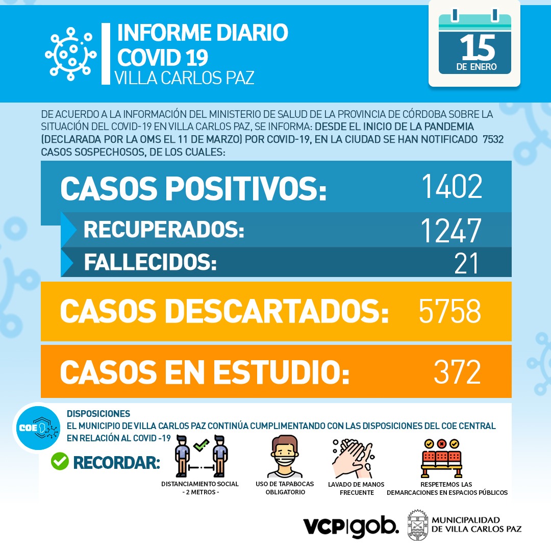 Desde el lunes a este viernes, en Carlos Paz se confirmaron 72 casos de Covid-19 según los reportes que entrega a diario el municipio.