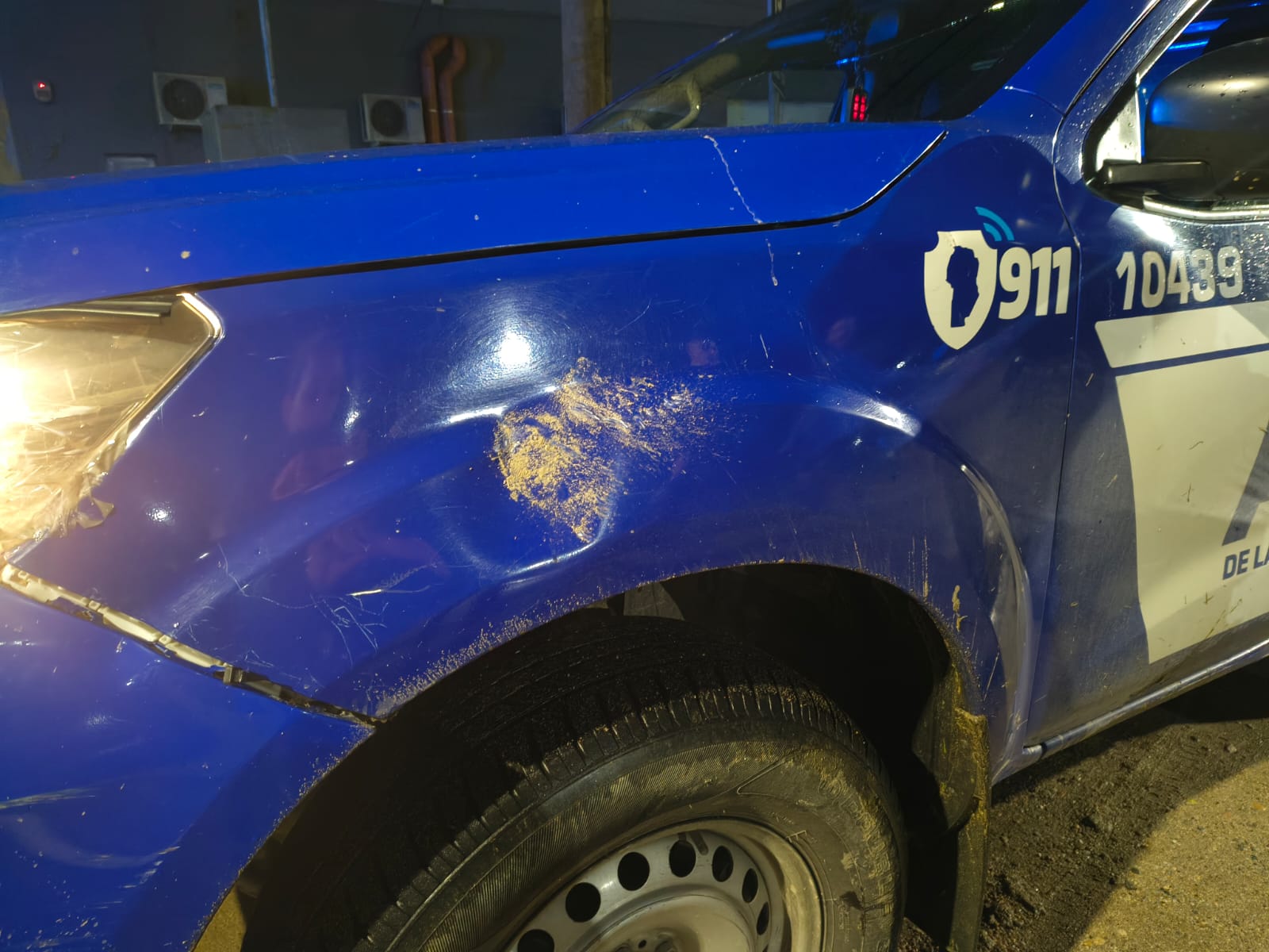 “Comenzaron con agresión hacia el personal policial, con lo cual tenemos el daño en el móvil policial, una de la ventanilla fue astillada, causaron distintas abolladuras en parte del capó y puertas del patrullero”, explicó Aguirre.