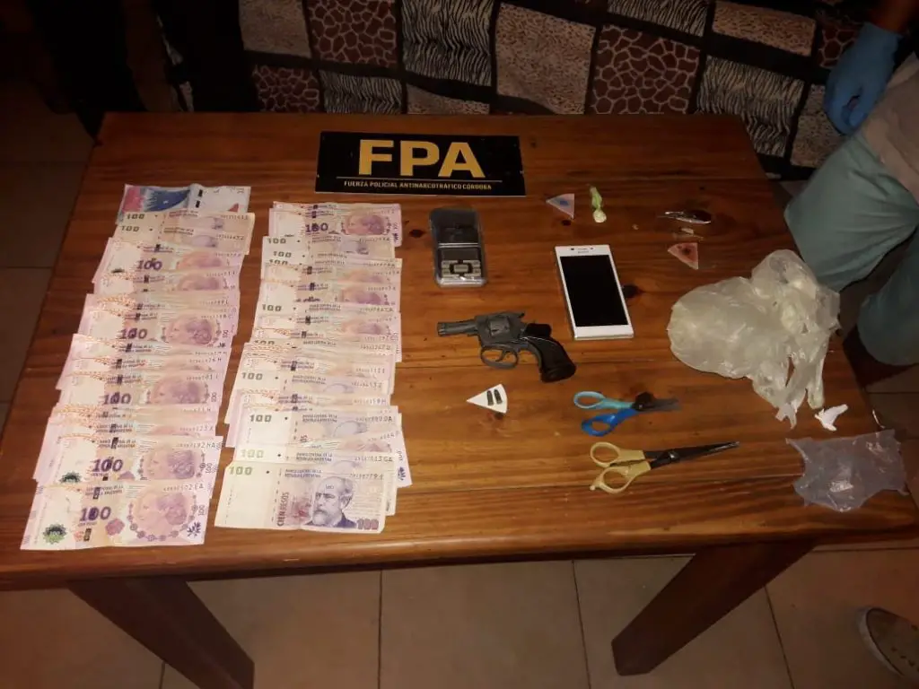A posterior investigadores acompañados por equipos tácticos incautaron la droga, un revólver calibre 22 y elementos aparentemente utilizados para la venta ilegal de estupefacientes.
