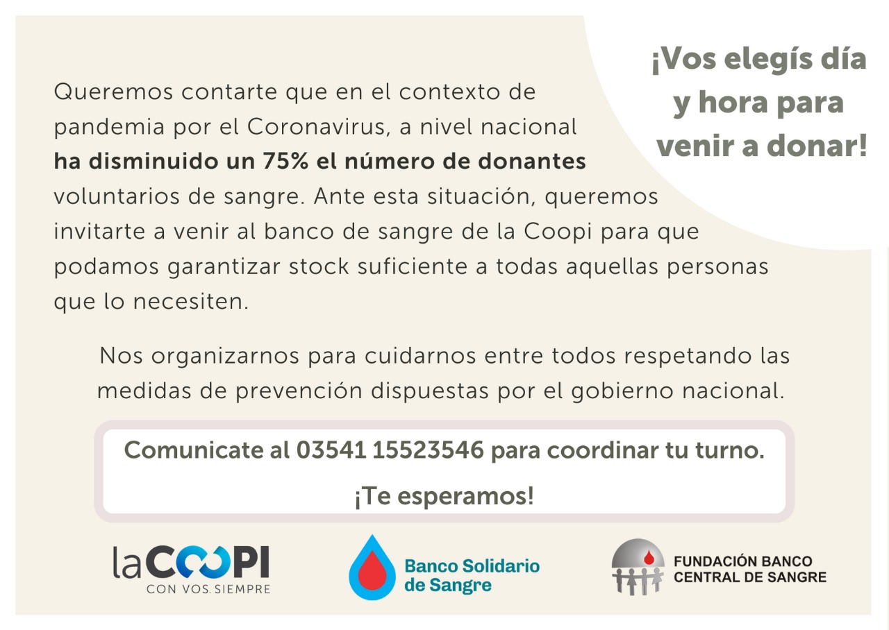 Bajo el lema: #QuedateEnCasa… pero ¡SALÍ PARA DONAR!, el Banco de Sangre convoca a los ciudadanos de la región a hacer su aporte para ayudar a los que lo necesiten y, que en este momento, somos todos.