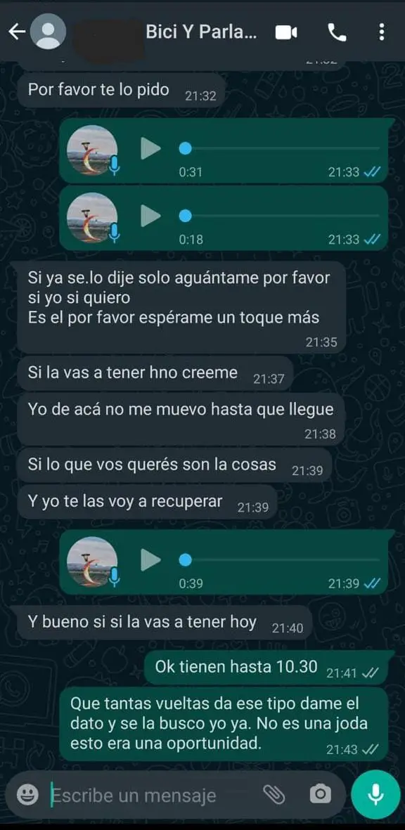 Conversación de Whatsapp con el delincuente.