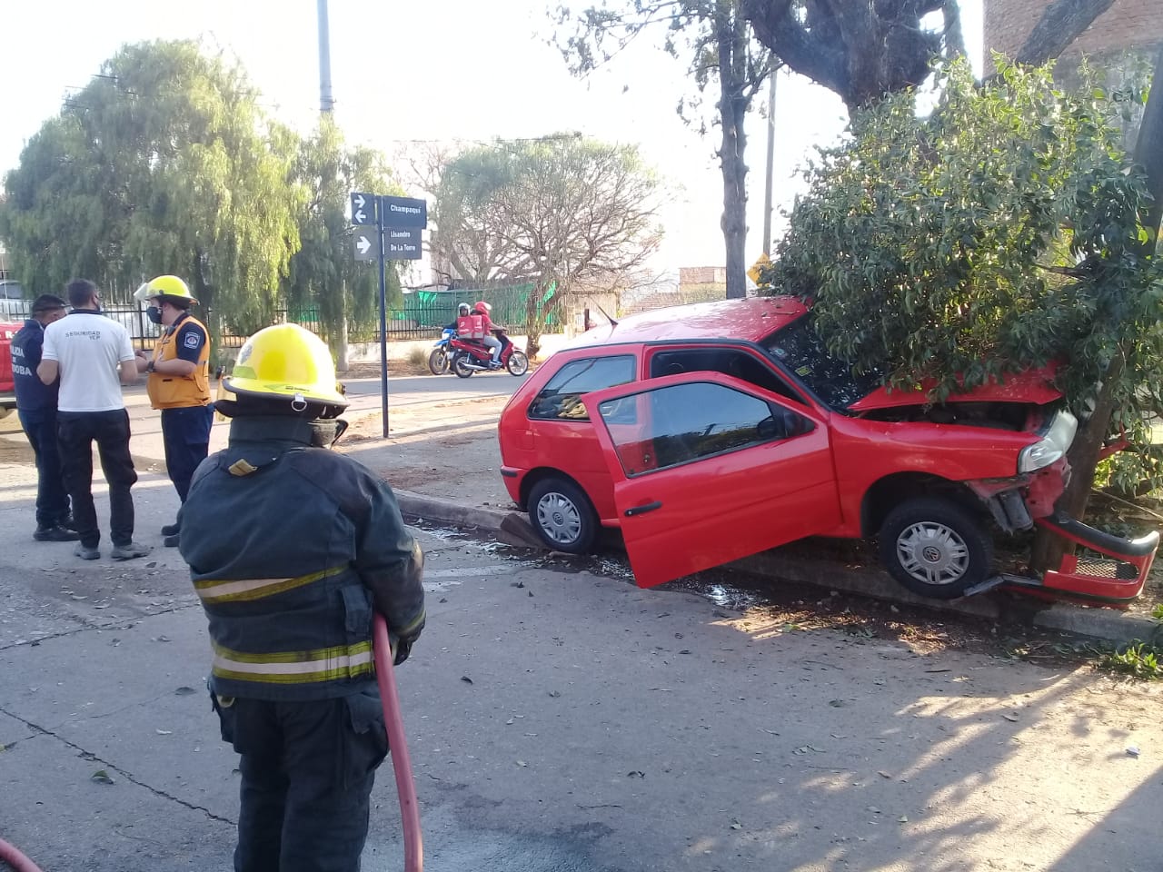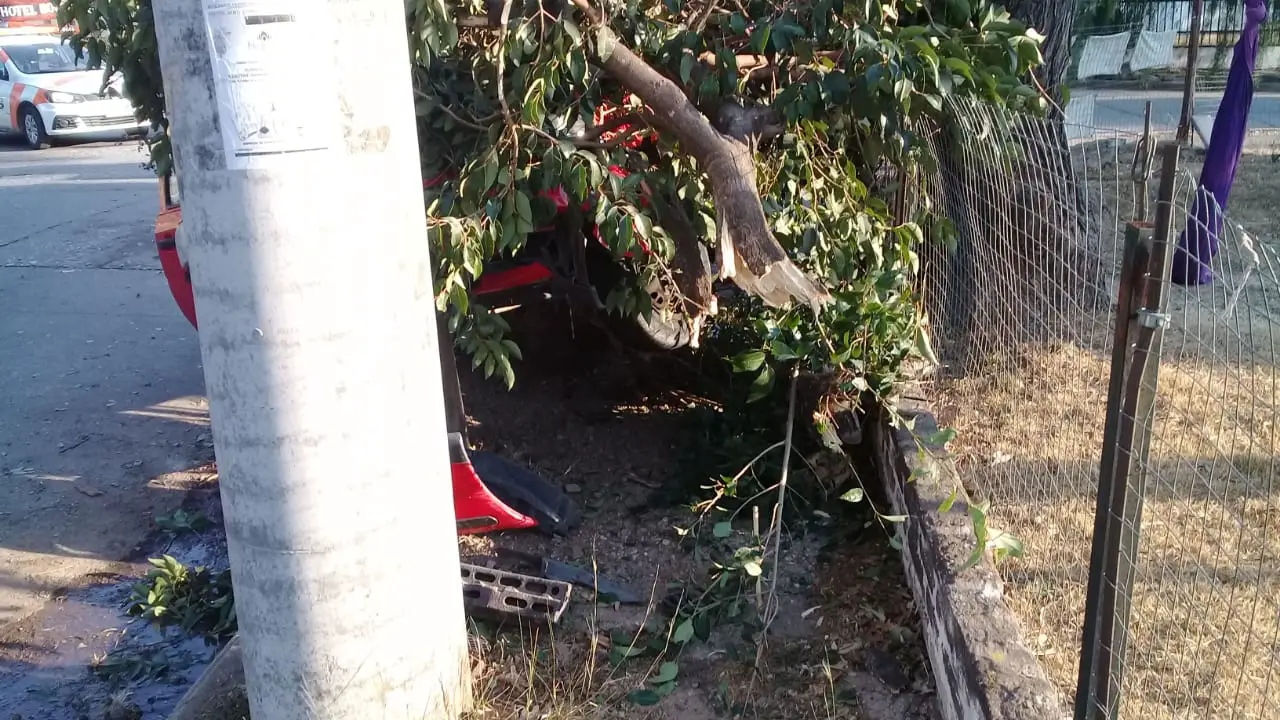 Esta tarde, alrededor de las 17 hs, un Volkswagen Gol rojo impactó contra un árbol en la intersección de las calles Champaquí y Lisandro de la Torre de Villa Carlos Paz.