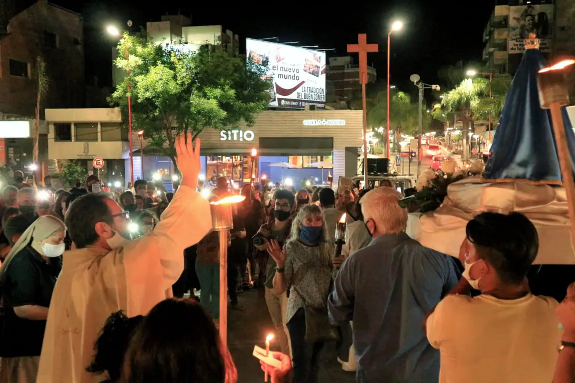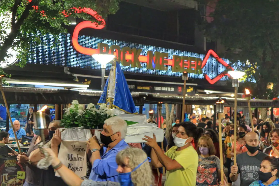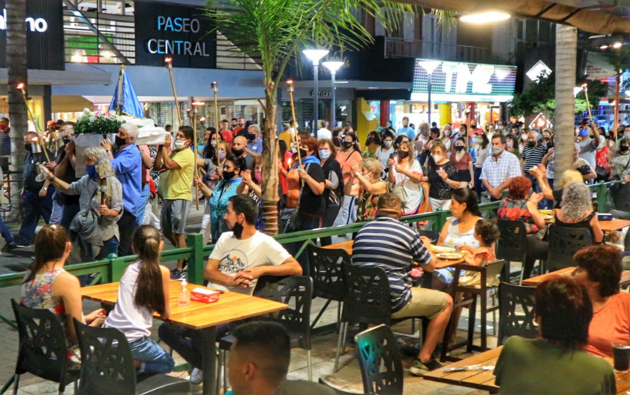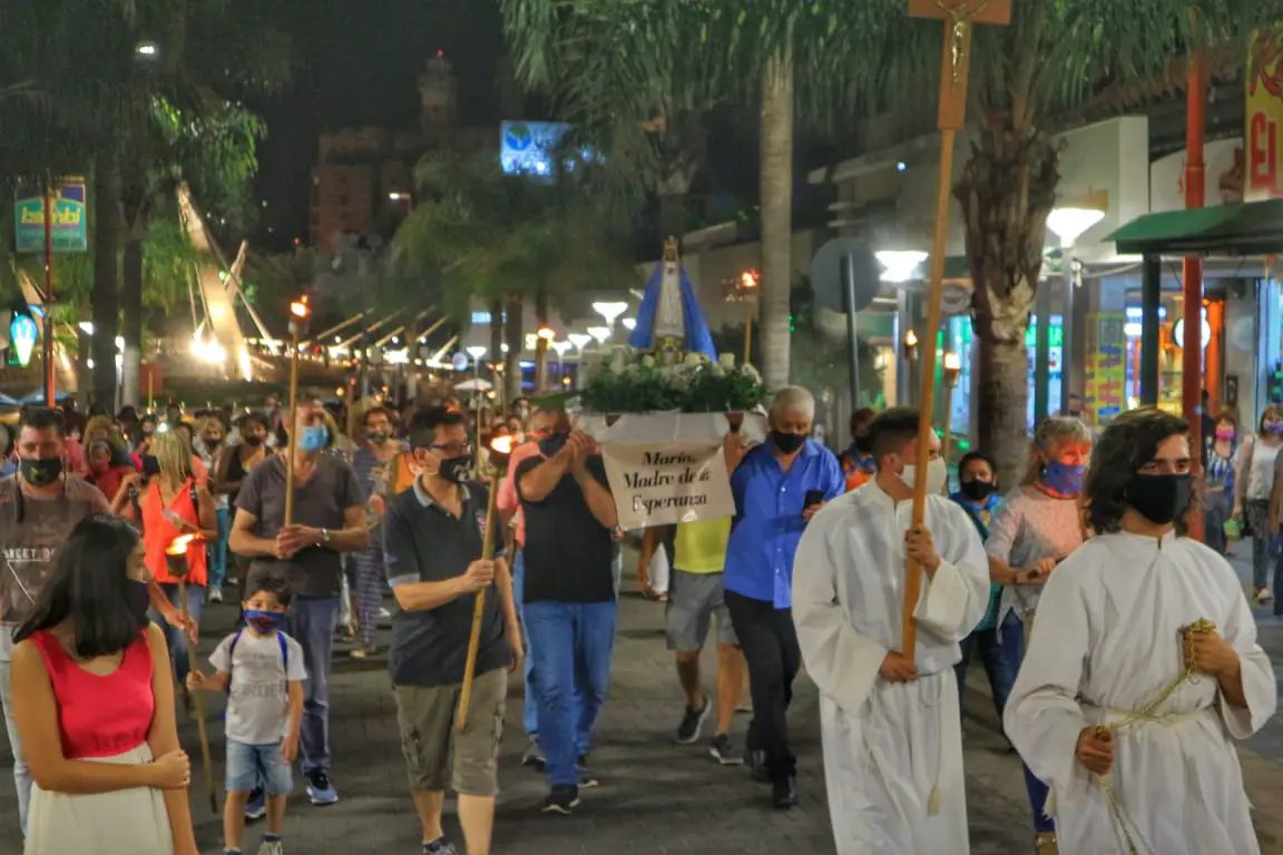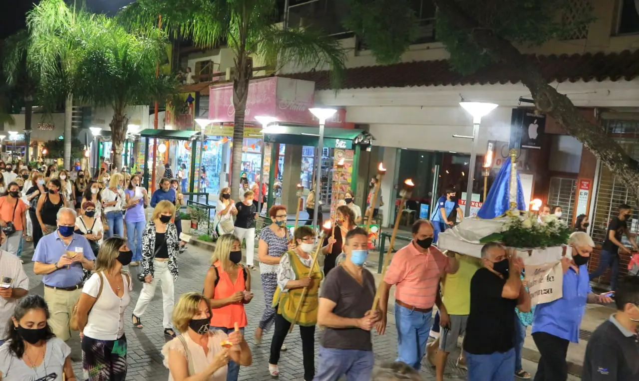 Tras los meses de pandemia en que estaban prohibidas las ceremonias religiosas, este martes se concretó en el centro de la ciudad la procesión en honor a la Virgen en el día de la inmaculada concepción.