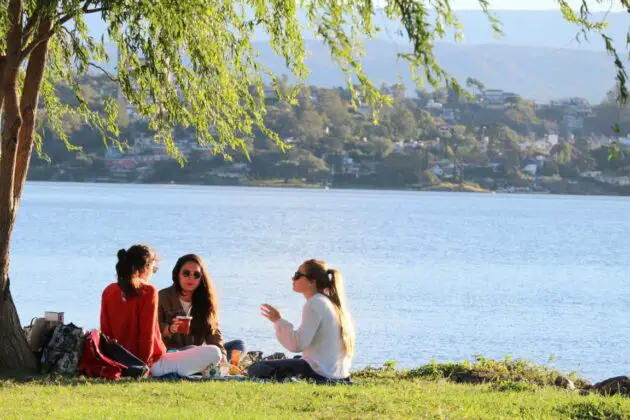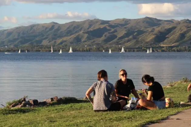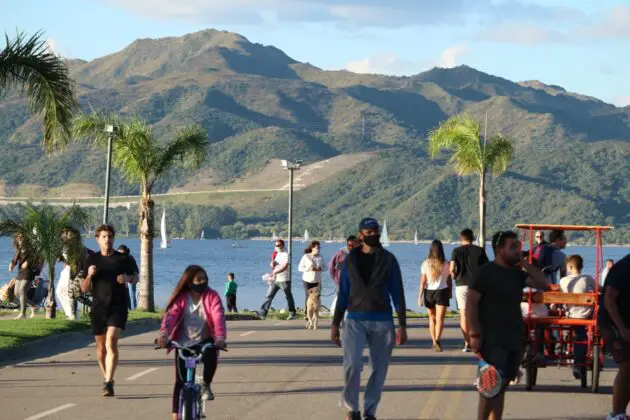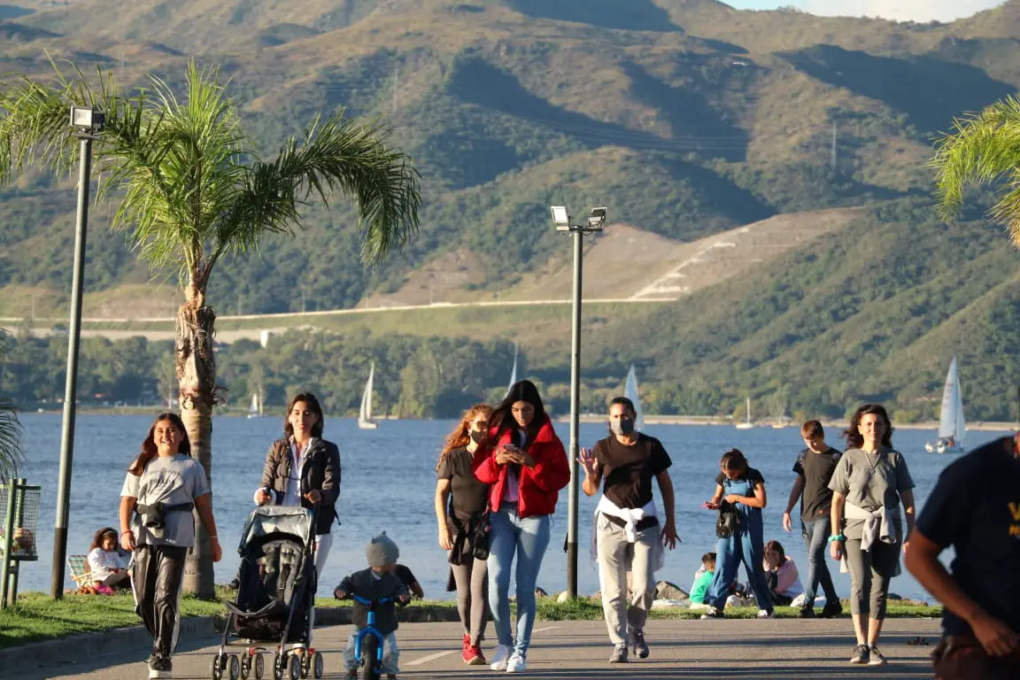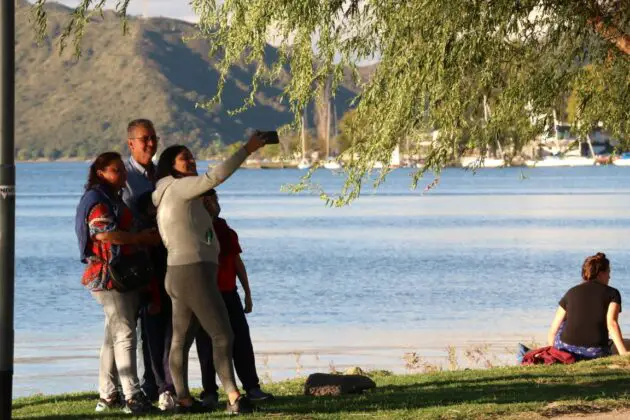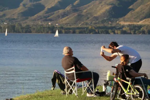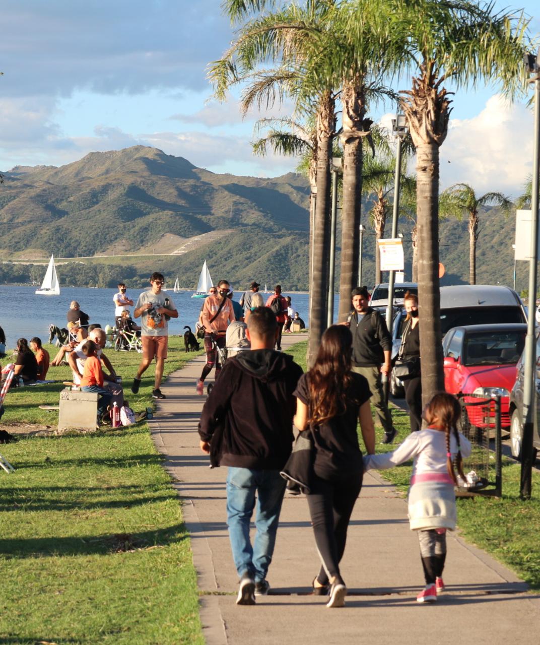 Mientras tanto , en la Costanera las familias locales y también algunos turistas disfrutaban el paisaje tomando mates, o simplemente contemplando el paisaje.