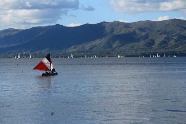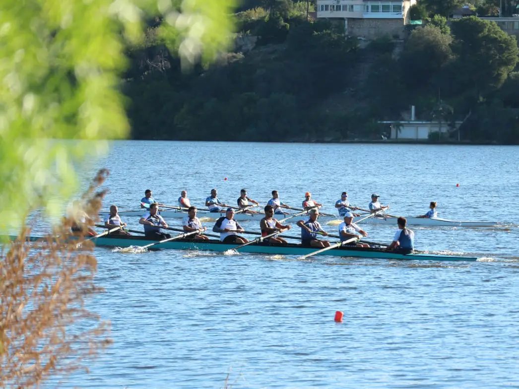 En el lago San Roque, casi sin viento, se disputó la fecha nacional de remo organizada por la Asociación Cordobesa de Remo, mientras cientos de veleros y kayaks también disfrutaban del espejo de agua.