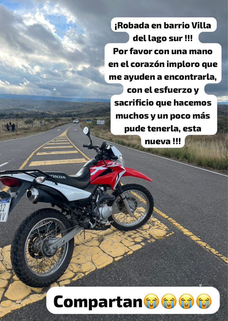 En la madrugada de este martes, Daiana, vecina de Carlos Paz, fue víctima del robo de su motocicleta en la zona de El Diquecito. Se trata de una Honda XR 150, patente A121PXV, que fue sustraída del estacionamiento del complejo donde vive.