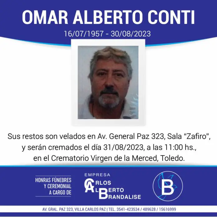 El pueblo de Carlos Paz manifiesta hoy su pesar por el fallecimiento de Omar Conti, un reconocido comerciante de la ciudad dedicado históricamente a la venta de repuestos.