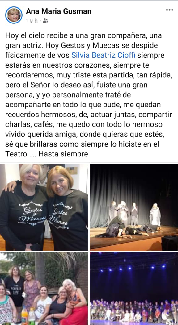 Silvia fue una impulsora de la cultura y el teatro independiente de Villa Carlos Paz y sus compañeros la despiden con tristeza.
