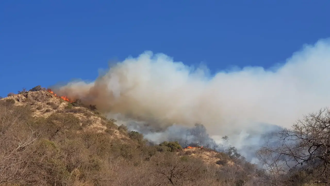 En Villa Carlos Paz, en horas del mediodía, se desató un incendio en un cerro, a la altura de la calle Gambarte, en barrio Sol y Río.