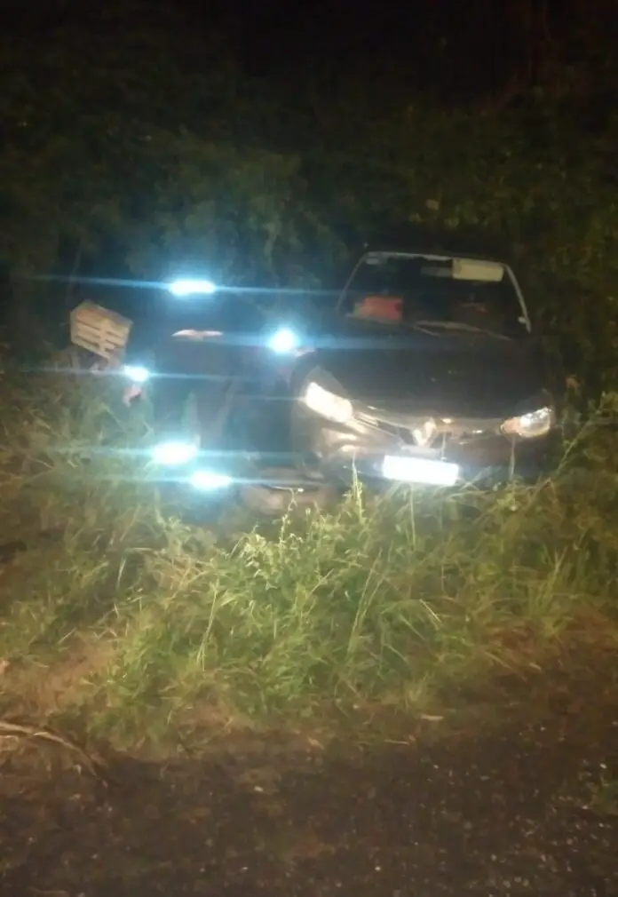 El conductor de un automóvil reventó uno de sus neumáticos delanteros y el vehículo terminó entre los pastizales de la banquina.