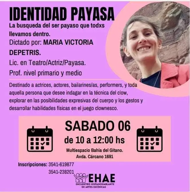 El evento, organizado y coordinado por la actriz, directora de teatro y profesora local Ivana Vivas, taller «Gestos y muecas» junto con artistas de la región, tendrá lugar el 6 y 7 de septiembre en el Multiespacio Bahía del Gitano, ubicado en Avda. Cárcano 1691.