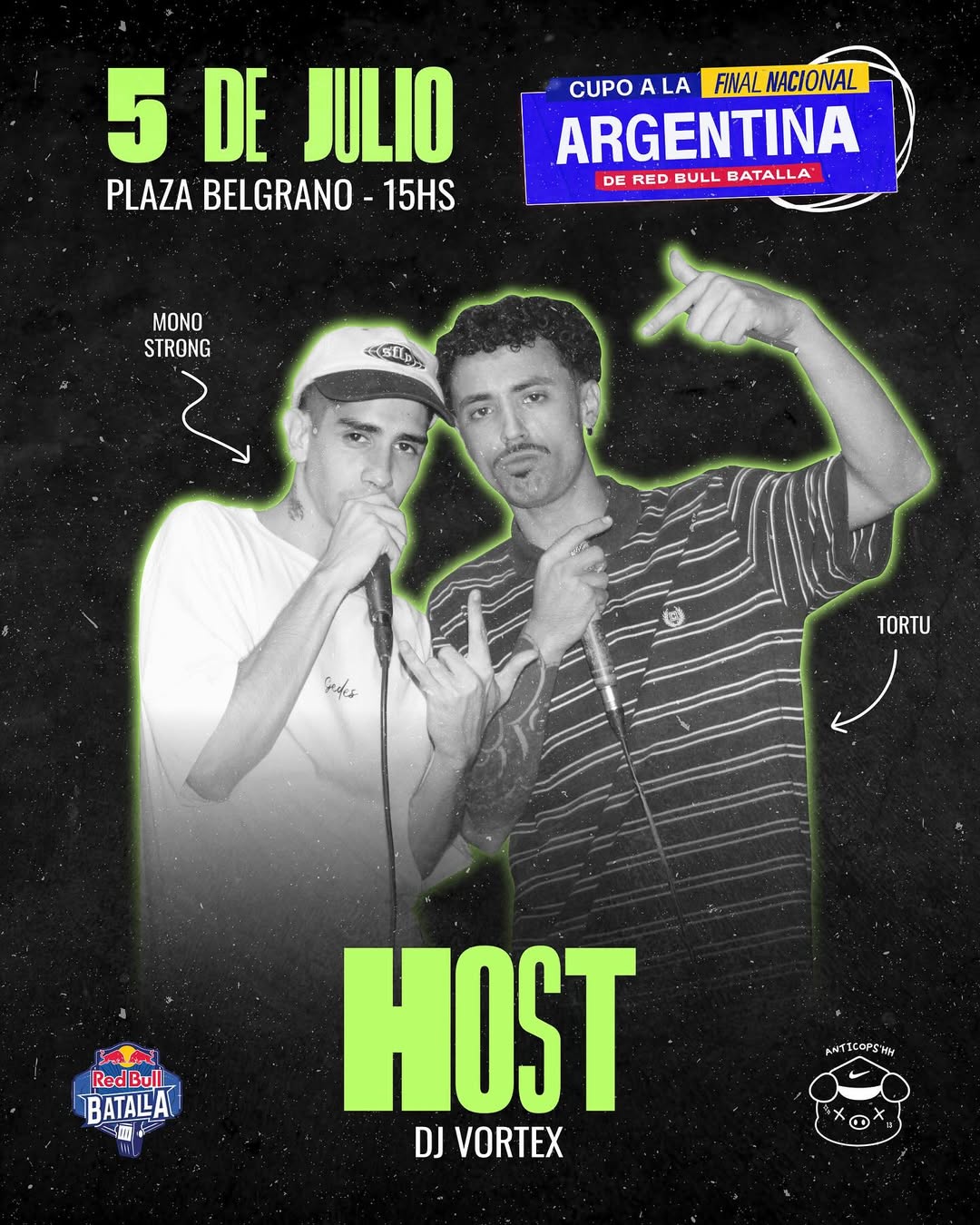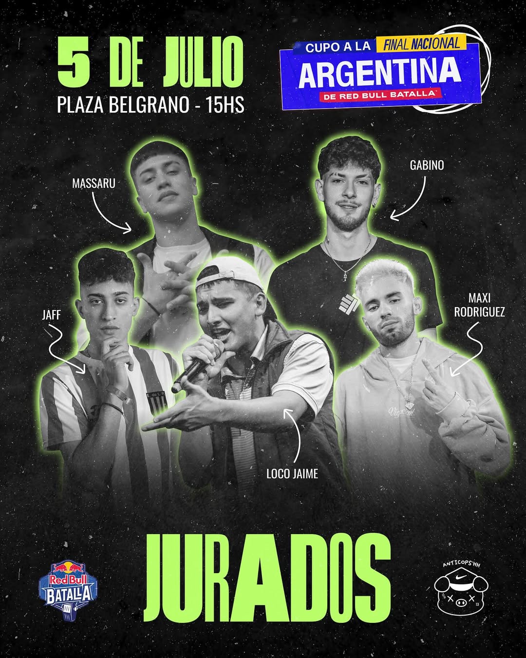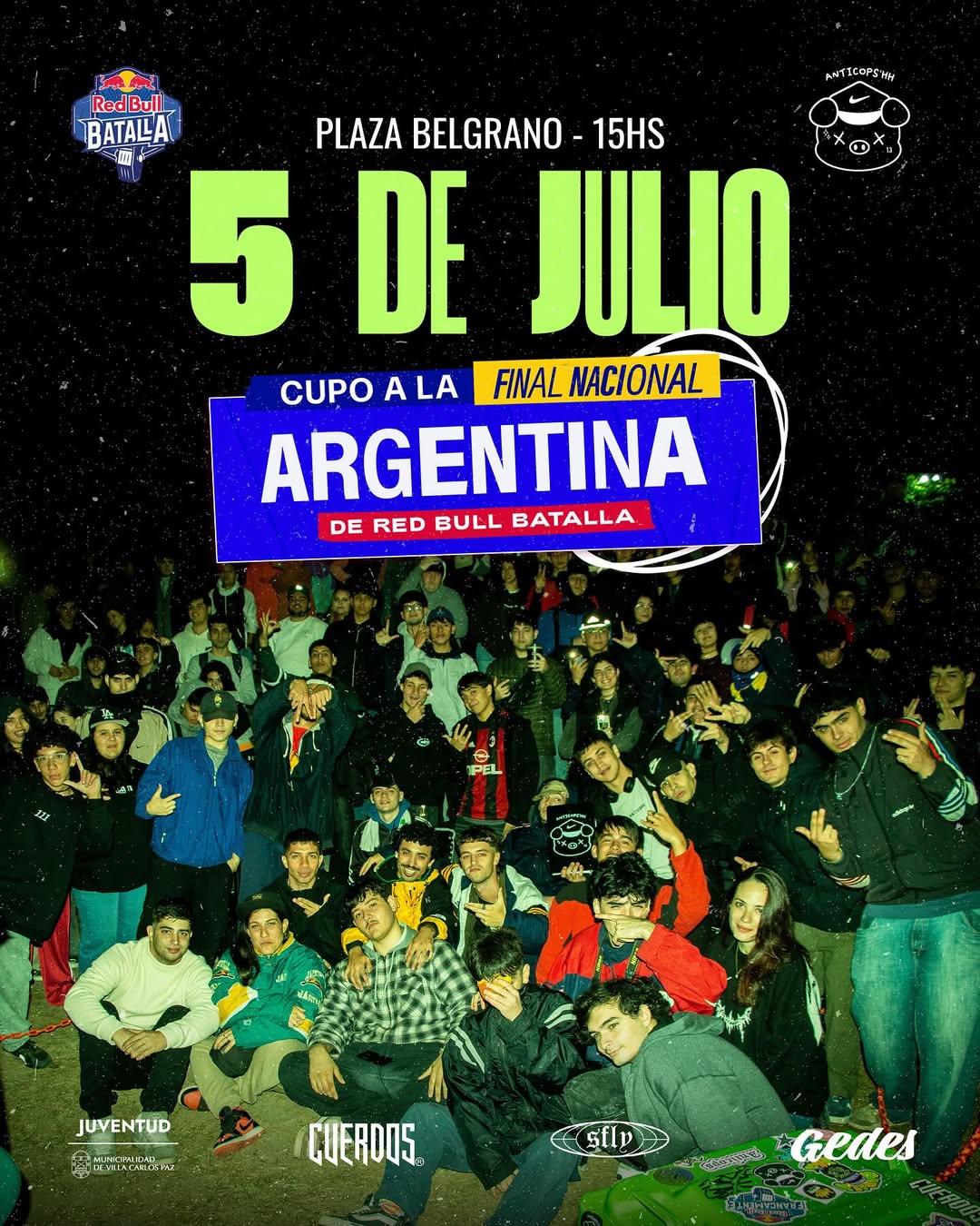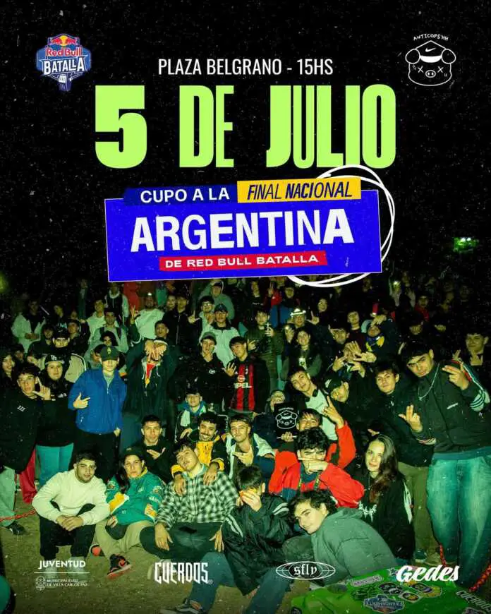 Este sábado 5 de julio, desde las 15 horas, Villa Carlos Paz se convierte en el epicentro del freestyle argentino con la competencia Anticops, clasificatoria oficial para la Final Nacional de Red Bull Batalla.