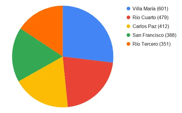 Carlos Paz Vivo! realizó un relevamiento de las localidades con más casos y nuestra ciudad se posiciona en el tercer lugar, luego de Villa María y Río Cuarto, que registran un total de 601 y 479 casos; respectivamente.