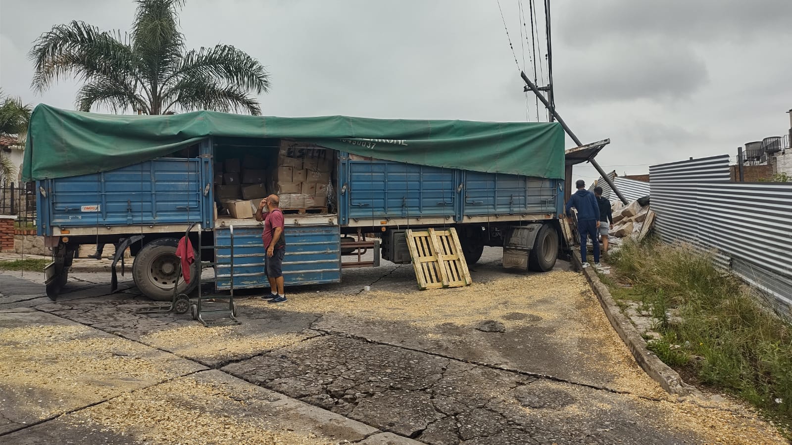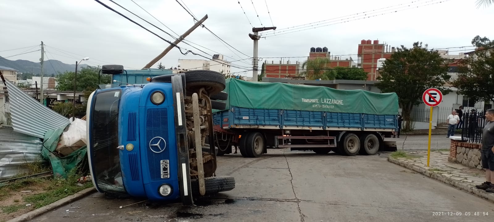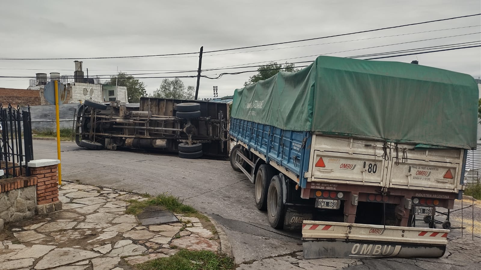 Según contaron desde el cuartel, el vehículo intentó doblar, cuando  se dio el accidente. Solo quedó en pie el acoplado, que al igual que el camión iban cargados con módulos del PAICOR que iban camino a ser entregados.