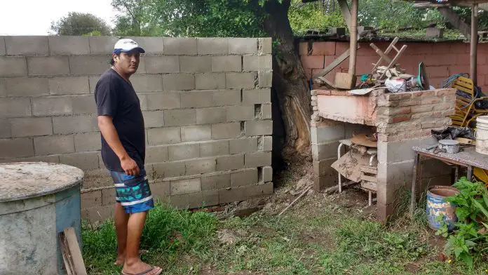 Matías Oviedo es padre de cuatro chicos. Vive en la esquina de Los Gigantes y José Ingenieros que el miércoles sufrió el embate de un torrente de agua que llegó desde otras propiedades y derribó dos tapias, rompió un auto y se metió a la casa de Matías provocando daños casi totales a sus pertenencias.