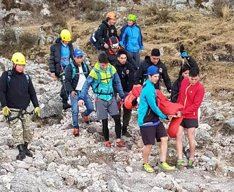 En ese punto un grupo de montañistas carlospacenses: Agustin Gasparini, Tomas Forgues, Gabriel Jalil y Facundo Minoldo, enterados de la situación se llegaron hasta la zona y se ofrecieron para bajar a la joven en la camilla. Los jóvenes colaboraron con el equipo de rescate y se fueron turnando para acarrear la camilla durante la hora y media que aproximadamente duró el descenso de la mujer accidentada.