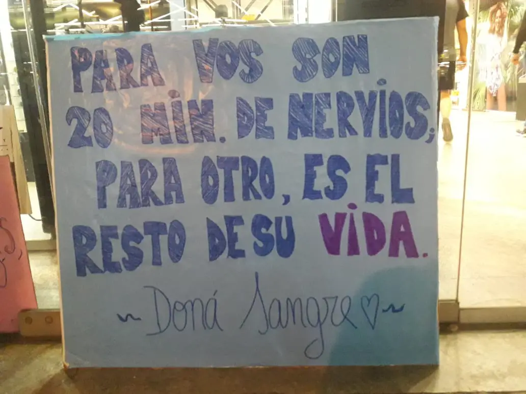 Los caminantes que este fin de semana pasaron por la costanera del lago San Roque se encontraron con pequeños carteles que invitaban a los ciudadanos a donar sangre y de forma salvar vidas. Detrás de la campaña están los jóvenes del Rotaract Club de Villa Carlos Paz que desde el 26 al 30 de noviembre desarrollan esta actividad en el marco del Día Internacional del Donante Voluntario de Sangre que se celebró el pasado 9 de noviembre.