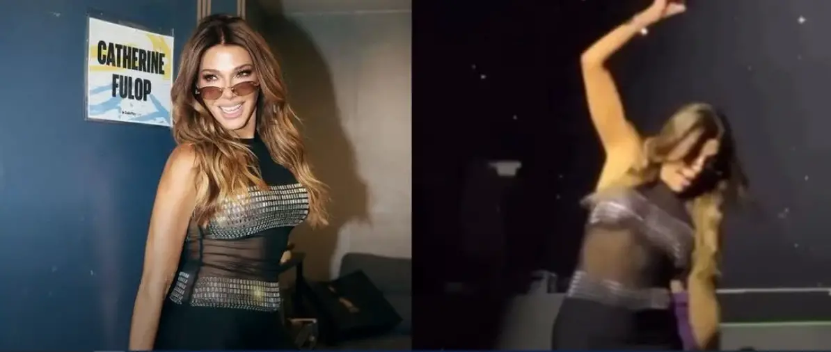 Catherine Fulop vivió un momento insólito durante su participación en el último show de Erreway en el Movistar Arena. Mientras interactuaba con Camila Bordonaba, su “hija” en la ficción de Cris Morena, la actriz tropezó entre los cables del escenario y cayó hacia una fosa delimitada por las vallas de seguridad.