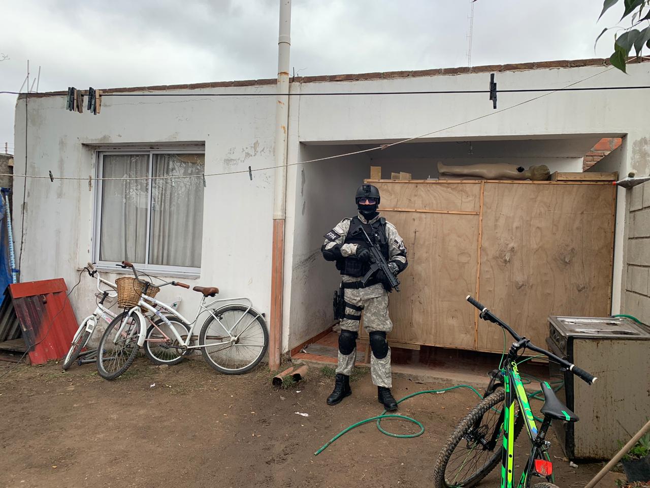 El dispositivo estuvo compuesto de cuatro allanamientos en inmuebles ubicados en las calles Centenario, 20 de Junio, Intendente H. Mignola y 25 de Mayo de la localidad mencionada.