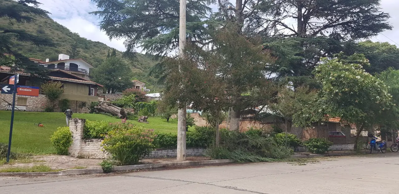 Fue en la intersección de calles Tucumán y Rivadavía, donde un pino de gran magnitud se desprendió de la tierra y, parte del mismo, quedó pendido sobre cables del tendido eléctrico.