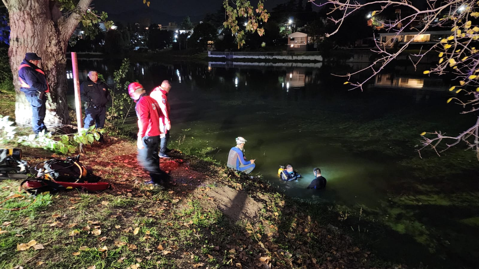 Buzos del DUAR y personal policial seguían trabajando en el área. El auto está a dos metros de profundidad, aproximadamente.
