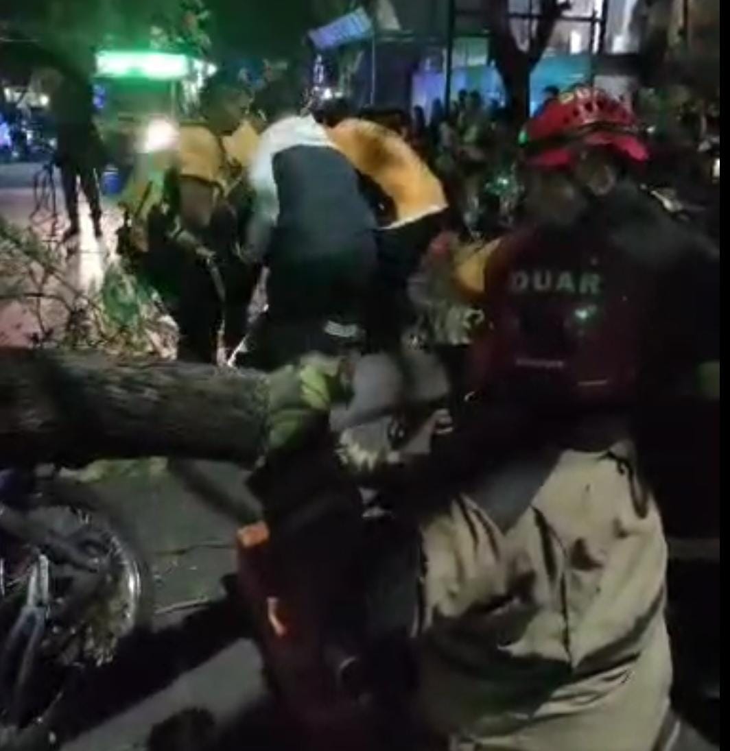 Un hombre de 35 años resultó herido luego de quedar atrapado debajo de un árbol de gran porte que se desplomó mientras circulaba en su motocicleta. El siniestro se registró durante la noche del viernes en la intersección de las calles Rondeau y Balcarce.
