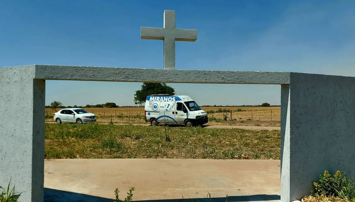 Veo el muro blanquito, a la cal, prolijito, con una cruz muda encima. Veo también un camino largo que no baja y que se pierde en el suelo desmontado… y que termina en otra cruz.