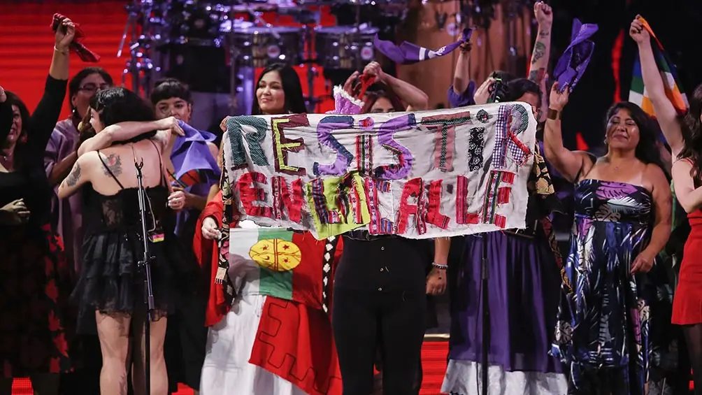 El esperado climax de la segunda noche, repleta de símbolos feministas y alusiones al plebiscito constitucional que los chilenos celebrarán el 26 de abril para definir si quieren o no una nueva Constitución y los mecanismo para elaborarla, se produjo con la artista Mon Laferte.
