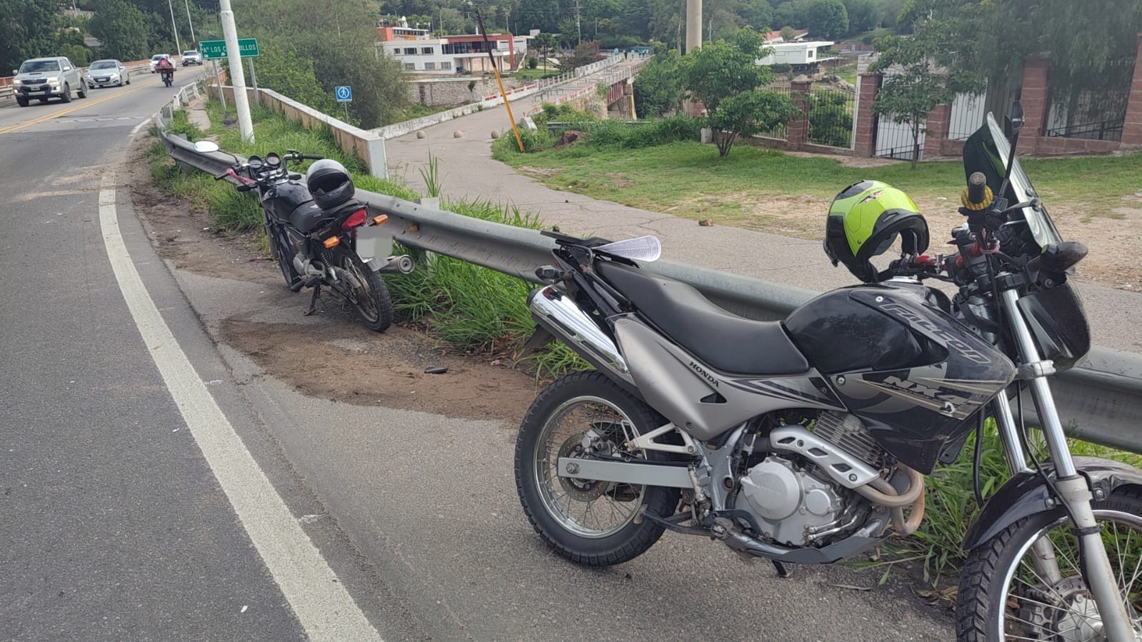 Este miércoles alrededor de las 10,30 hs, dos motos chocaron en Av. Sarmiento a la altura del Puente Negro, Bº Villa del Lago de Carlos Paz.