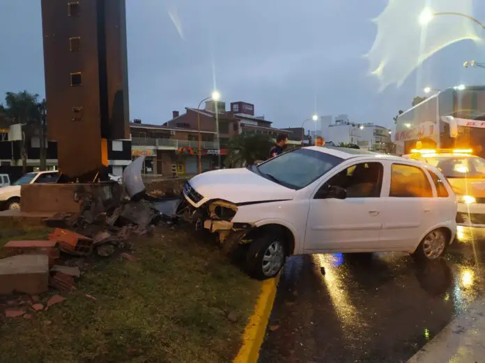 En horas de la mañana de este domingo, el conductor de un Chevrolet Corsa perdió el control del vehículo e impacto de frente un cartel ubicado en el cantero ubicado en San Martín y Uruguay.