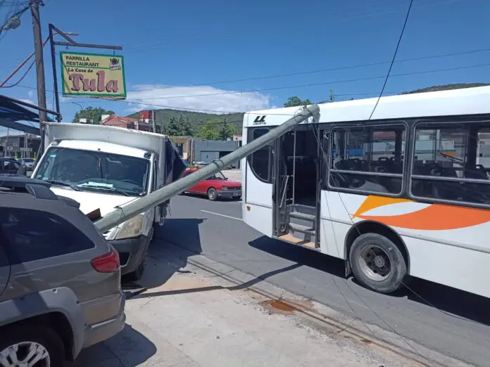 Esto generó que el camión se deslice y alcance a una columna con cables de servicios, la cual fue arrancada desde su base.
