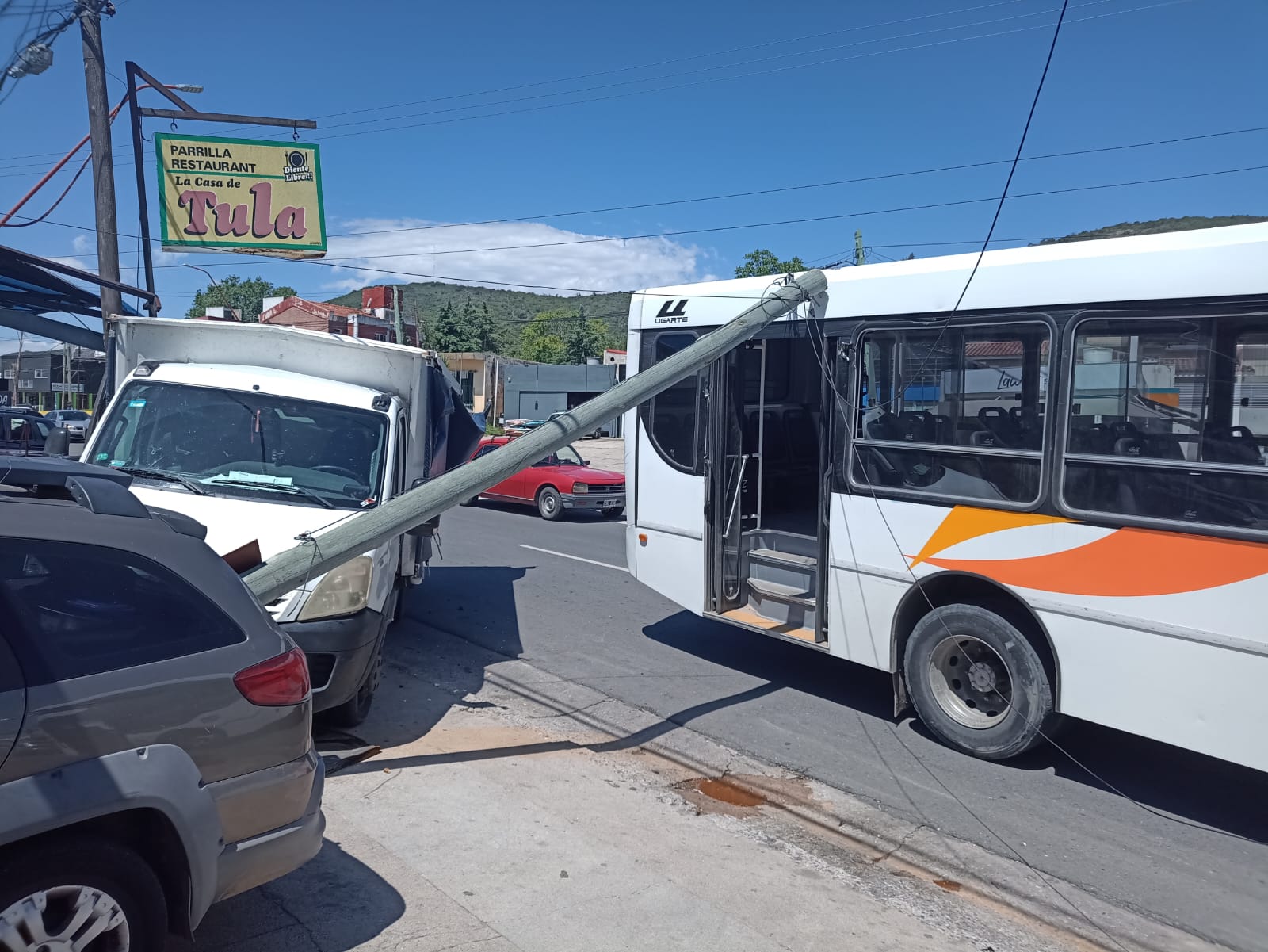 Según informaron desde la Unidad Regional Departamental Punilla, por motivos que deberán esclarecerse, el ómnibus Mercedes Benz B92 iba circulando por la mencionada avenida y, con su lateral, enganchó la parte trasera de un camión Iveco Deily que estaba estacionado, sin ocupantes.