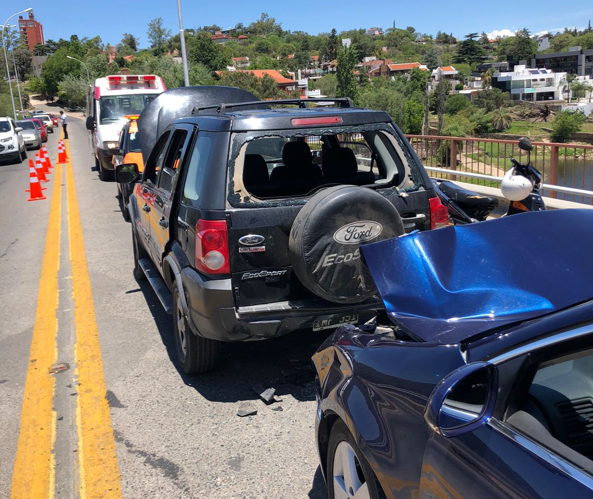 Minutos después de las 13 hs de este martes, se produjo un accidente que involucró a tres vehículos en barrio Villa del Lago, más precisamente en el Puente Negro.