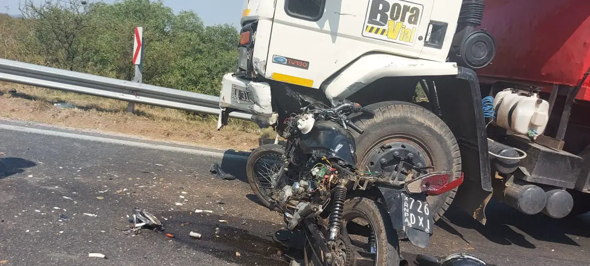 El hecho sucedió minutos después de las 15.30 sobre la ruta 38. Allí, por motivos que intentan esclarecerse un camión volcador colisionó con una motocicleta tipo de calle negra tripulada por un joven de 25 años.