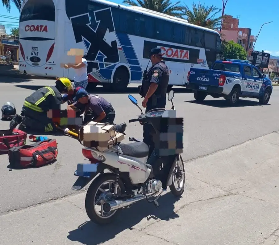 La mujer de 37 años de edad se trasladaba en una Motomel Blitz, que rozó a un vehículo Mercedes Benz C300, conducido por una mujer de 65 años de edad.