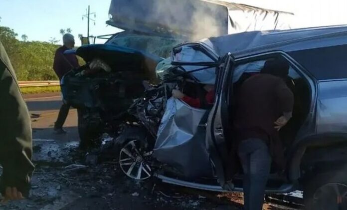 Por causas que se investigan, impactaron a gran velocidad en el Kilómetro 887 de la ruta nacional 14 un camión Ford F4000 y una Toyota Hilux SW4, en la que se trasladaba la familia de Snopek.