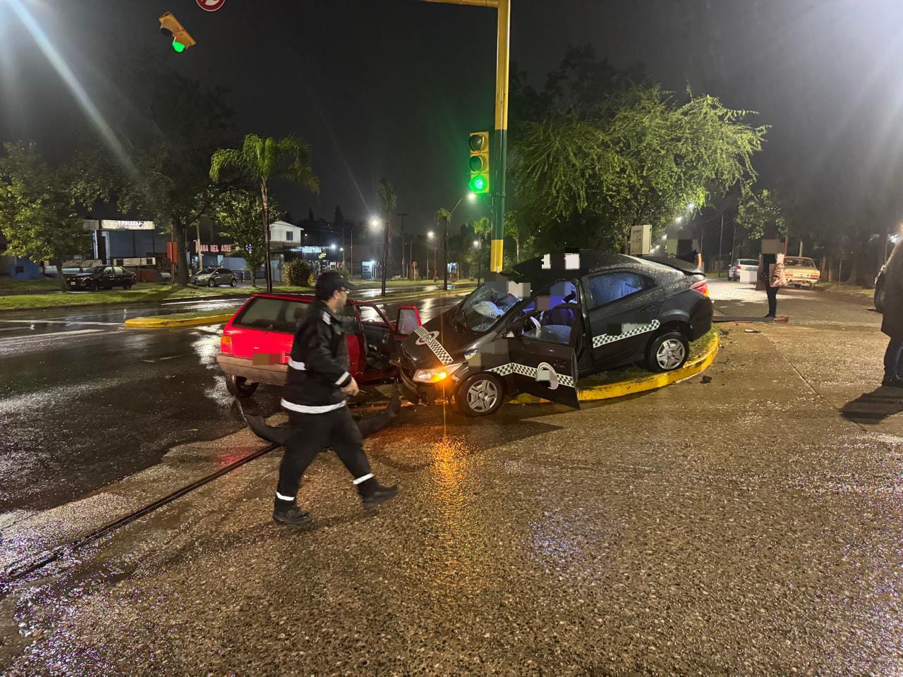 Según fuentes policiales, un hombre de 24 años, quien se conducía un automóvil Fiat Uno, con dos acompañantes, y por motivos a establecer, fue colisionado en su costado derecho por un automóvil Chevrolet Prisma (remis), conducido por un hombre de 48 años, que iba con un pasajero de 54 años.