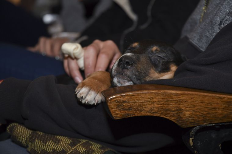 Sentados en el piso a los pies de sus dueños, arriba en el regazo o directamente en las butacas de la sala, la decena de perros de distintas edades y tamaños que estuvieron presentes permanecieron tranquilos, sin ladrar y algunos incluso siguiendo con la mirada atenta lo que sucedía en la pantalla.