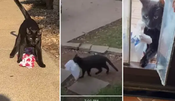 Cleo es una gata de color negro que se ha vuelto famosa en su vecindario en Texas por ser amante de las cosas ajenas. La felina de rostro adorable y actitud juguetona ha sido vista por las cámaras de seguridad del vecindario robando toallas, frazadas, servilletas de tela, medias y otros objetos.