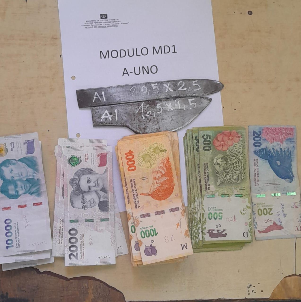 Como resultado de las ocho horas que demandó la pesquisa en los distintos pabellones las autoridades detallaron los siguientes elementos secuestrados a internos e internas: 68 aparatos celulares; cuatro fuentes de alimentación; 24 cargadores; 11 plaquetas de cargadores; 41 cables USB; 46 elementos punzantes; un cuchillo de fabricación casera; 18 chips, un micro chip; nueve auriculares: 188 envoltorios de marihuana; 399 envoltorios de cocaína y $777.400 en dinero no autorizado.