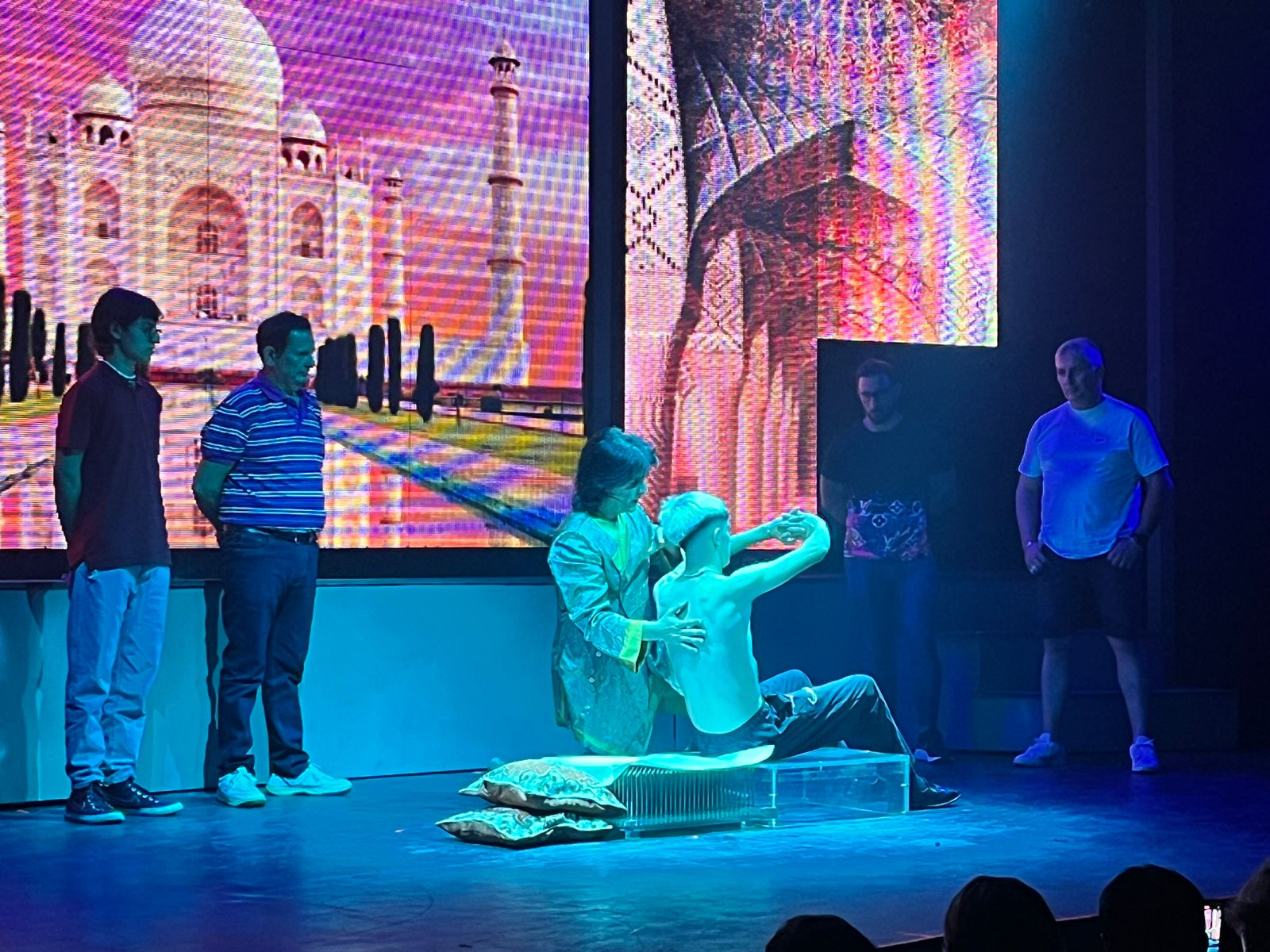 El elenco se completa por una eximia performance de bailarines y acróbatas como Mauricio Gurini, que dejan al público perplejo, bajo la dirección de la coreógrafa Mik Grimoldi.