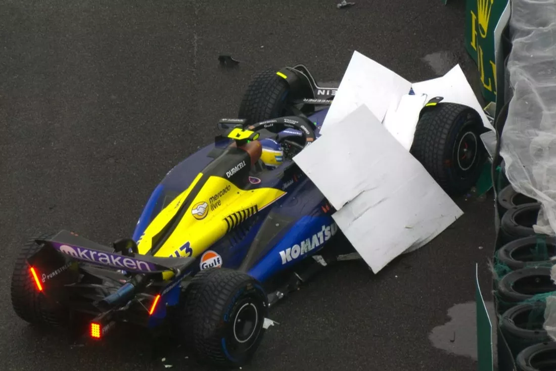 En una caótica clasificación marcada por las fuertes lluvias, Franco Colapinto, piloto argentino de Williams, sufrió un accidente en la Q1 del Gran Premio de Brasil y quedó eliminado. El joven pilarense, quien había logrado el noveno mejor tiempo hasta ese momento, perdió el control de su auto en el circuito de Interlagos y, tras un trompo, impactó contra las barreras.