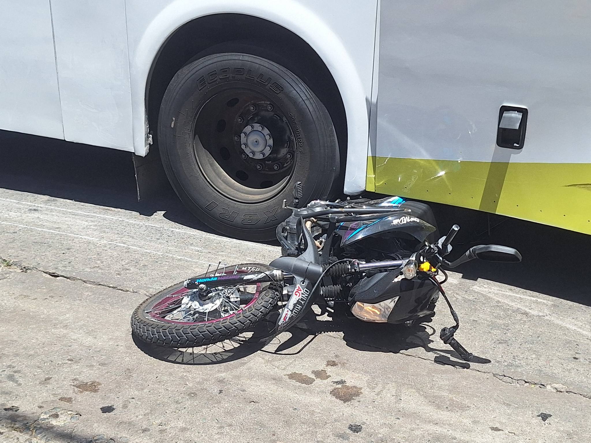 Un joven motociclista de 20 años sufrió heridas tras chocar contra un colectivo de una empresa de turismo. El hecho ocurrió esta tarde en calle Madrid, en el ingreso a Playas de Oro.