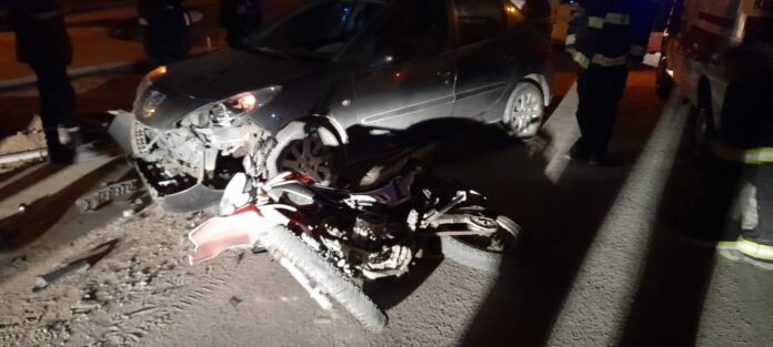Este viernes a la madrugada, chocaron una moto y un auto en la intersección de calles Rosario y Séneca, en barrio Costa Azul Sur de Villa Carlos Paz. Pese al impacto, afortunadamente los conductores resultaron ilesos.