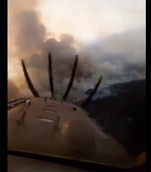 Más de 40 bomberos voluntarios de Córdoba y dos aviones hidrantes de la provincia combaten un incendio forestal en Villa Albertina, jurisdicción de Deán Funes.