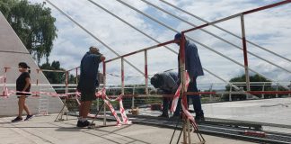Este sábado, bien temprano, operarios de una empresa contratista comenzaron a trabajar en la primera fase de la obra para colocar adoquines sobre las chapas de aluminio que conforman el piso del puente del Centenario.