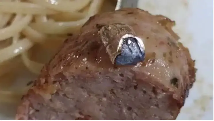Al comienzo, el hombre pensó que se trataba de algún material que había quedado en el chorizo tras ser procesado en la picadora, pero todo se volvió más confuso cuando miró de cerca lo que era: había una bala en su interior. “De suerte nada más no lo tragué”, expresó el padre de familia ante la FM Aire Libre sobre el proyectil que extrajo de su boca.