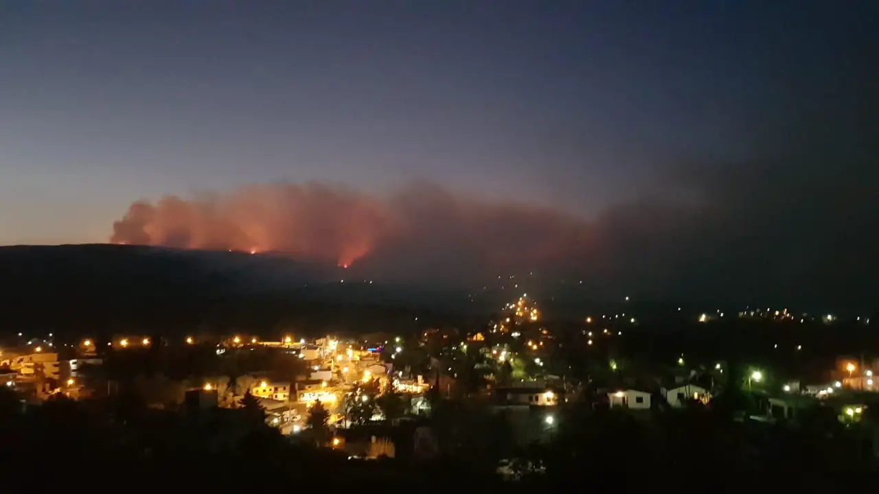 Pero la llegada de la noche y la presencia de viento en el sector, complican el desempeño de los voluntarios que intentan contener el incendio que continúa activo.