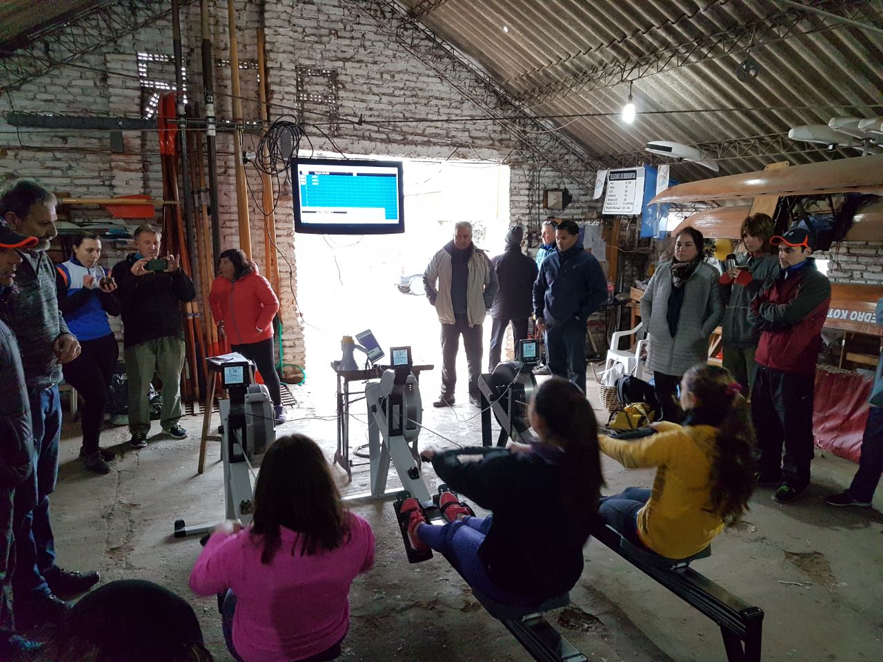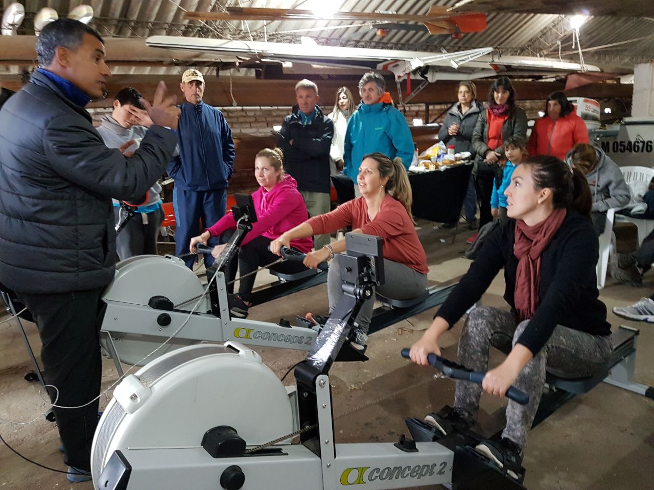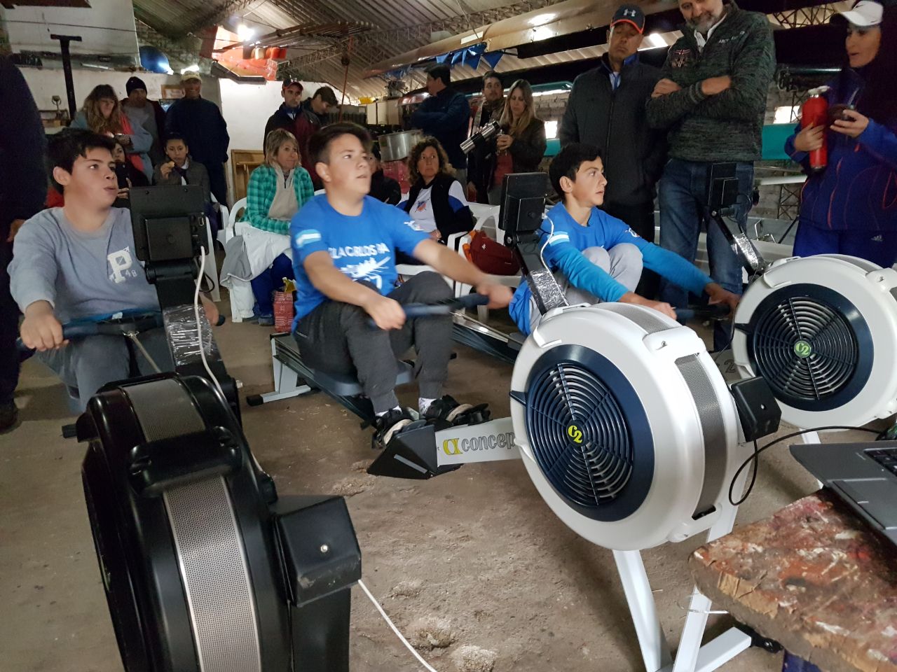 Por eso, varios miembros del equipo trajeron sus máquinas de remo y hubo una divertida serie deportiva en el interior de las instalaciones del Club, frente al lago San Roque. La opción de los profesores y directivos del club fue traer tres “Remorgómetros” conectados a una computadora y a una pantalla e improvisaron competencias internas.