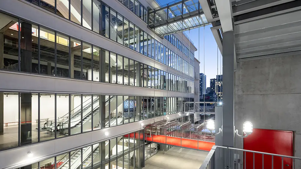 En el Gran Lobby del Edificio Saban (nombre de la productora de Haim Saban y Shuki Levy, principal benefactor), los visitantes son recibidos por una enorme galería con paredes vidriadas y una experiencia multipantalla led, donde se puede disfrutar de forma gratuita de una introducción a la inmensa exposición Stories of Cinema, que abarca un recorrido por varios niveles.